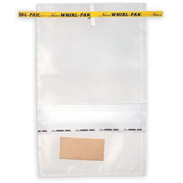 Bags are designed to be used in a homogenizer blender for thorough mixing of the sample and media. The sample may be plated out or used as a pre-enrichment broth later. This is standard procedure for USDA-ARS to identify foodborne pathogens. The Whirl-Pak® Speci-Sponge® bag is designed for environmental surface sampling of work areas, equipment, animal carcasses, and any other place where testing for Listeria, Salmonella, E.coli, coliforms, and other foodborne pathogens, or anthrax is required. The special dry sponge is free of bactericides and has been tested to be non-inhibitory. It measures approximately 1.5" x 3" x 0.625" (3.8 x 7.6 x 1.5 cm) thick when wet, and is sterilized inside a Whirl-Pak® bag. Wearing a sterile glove when wiping with the sponge is recommended to help prevent contamination. After the sample has been collected and the sponge returned to the bag, it can be sent to a lab for testing. In the lab, media may be added directly to the bag and the sample incubated inside the bag for a +/- test, or the sample may be squeezed out of the sponge, pipetted, and plated out.