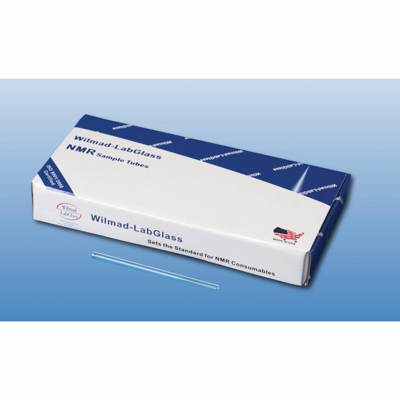 Wilmad-LabGlass high-throughput NMR tubes are manufactured from borosilicate glass that meets the ASTM Type 1 class B standard and recognized as N51A. Due to its nature, this glass has much less thermal-shock resistance than class A glass used for our precision tubes. It may contain Fe2O3 which is paramagnetic around 1200 ppm and has certain impact on shimming quality at high field over 600 MHz. High-throughput NMR tubes have an averaged camber of 60 microns to guarantee the spectrum resolution for small molecule (MW<250) samples up to 600 MHz. WG-1000 tubes are sold in various pack sizes. The twist pack is made of polypropylene and resistant to common organic solvents. The packing materials are 100% recyclable. Some of our competitors altered our MHz rating standard by advertising inferior tubes for higher magnetic field experiments. Please visit our NMR economy tube cross reference guide to make a head-to-head comparison including pricing. The products listed on the same row will have the same performance at the same magnetic field IF the specifications of our competitors' product are guaranteed as advertised. From this guide we will prove our 60 year philosophy again as "committed to providing customers with cost-effective NMR consumables of the highest quality".