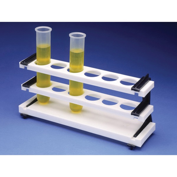 White polypropylene rack has six places, 27 mm dia to hold 50 ml tubes.