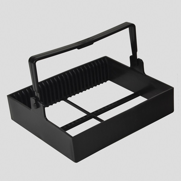 Universal slide rack and staining dish for histology, microbiology and other slide staining needs. Made of black polyoxymethylene (POM) plastic which is easy-to-clean and resistant to chemicals used in staining procedures.