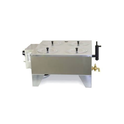 Water Bath, 14 L, 14 L x 14 W x 8" H, 5" Depth, Stainless Steel, 115 V, 1250 w Electrical Requirements, 4 Concentric Rings, Heavy Duty, Four 13 cm dia Opening, Heavy Duty 3" Legs Permanently Attached to the Body