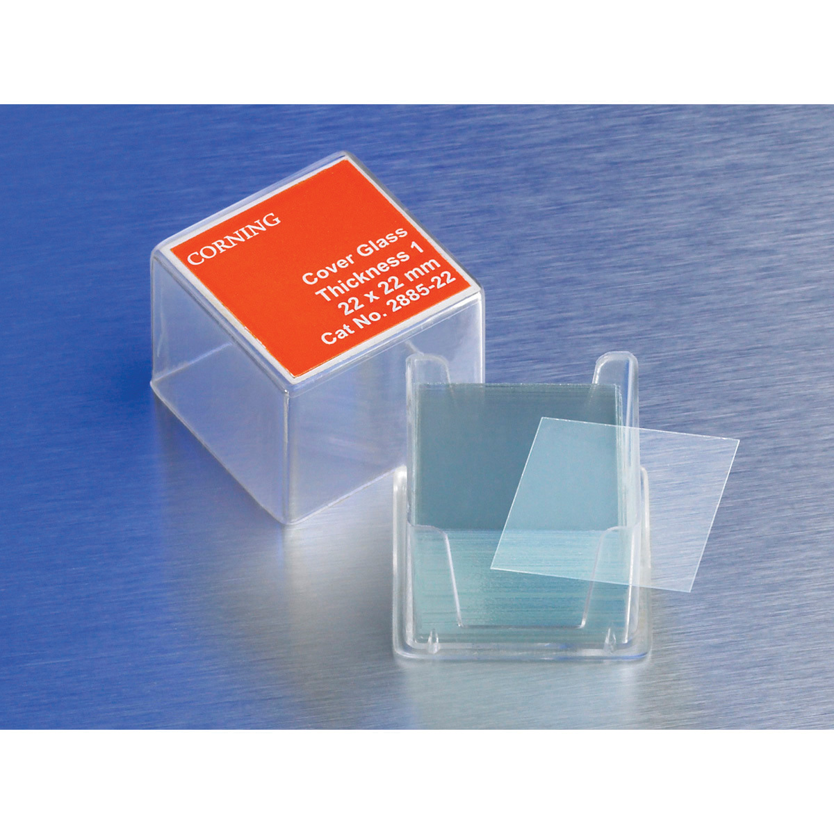 Square Cover Glass, 22 x 22 mm, Clear, Borosilicate Glass, 0.12 mm Thickness, Reusable, Non Sterile, Resistant to Surface Attach or Weathering and Will Remain Clear for Extended Period of Time