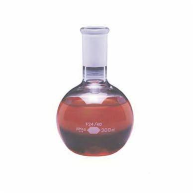 Boiling Flask, 250 ml, 83 OD x 133 mm H, Borosilicate Glass, Flat Bottom, 24/40 Standard Taper Joint, With Short Standard Taper Joint Neck