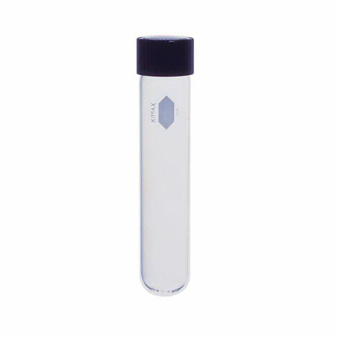 Culture Tube, 50 ml, 25 OD x 150 mm L, 24-410 Thread Finish, Borosilicate Glass, With Phenolic Screw-thread Caps and PTFE-Faced Rubber Liners, Reusable, Has a Fire-polished Top Rim and Uniform Wall Thickness for Maximum Heat Transfer and Chemical Resistance