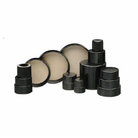 Screw Cap, 38-430 Closure Size, Black, Phenolic, Solid Top Closure Style, 14B Rubber Liner, Autoclavable, Nontoxic White Styrene-butadiene Rubber Liner Ideal for Cell Culture Work