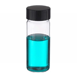 Standard Vial, 25 ml, 28 dia x 73 mm H, Clear, Borosilicate Glass, 24-400 Closure Size, Black Phenolic Closure, PTFE/14B Rubber Liner, Screw Thread Finish, Solid Top Cap Style, Autoclavable, With Cap Attached