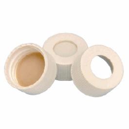 Screw Cap, 22-400 Size, White, Polypropylene, Solid Top Closure Style, TFE/Silicone, Polypropylene Glass-filled Cap