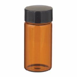 Standard Vial, 20 ml, 28 dia x 60 mm H, Amber, Borosilicate Glass, 24-400 Closure Size, Black Phenolic Closure, 14B Rubber Liner, Screw Thread Finish, Solid Top Cap Style, Autoclavable, With Cap Attached