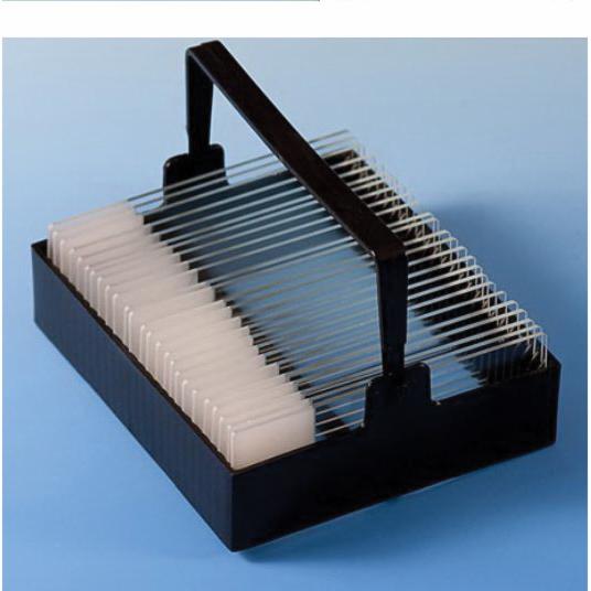 Slide Staining Rack, Black, Polyoxymethylene, With Handle, Holds up to 25 Microscope Slides, Designed For Use With Staining Dish 513222
