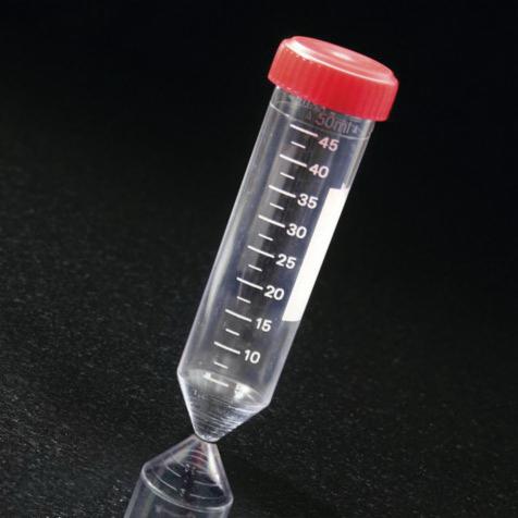Centrifuge Tube, 50 ml, 29.5 dia x 114 mm H, Polystyrene, 1700 RCF Spin Rate, Sterile, Autoclavable, Marking Spot, Printed Graduation, With Attached Red HDPE Screw Cap