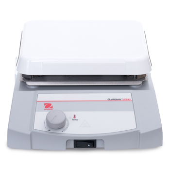 Dependable OHAUS Guardian 2000 Hotplates and Stirrers are ideal for education and other lab environments that require affordable, everyday fast heating and reliable stirring up to 15L. All three sizes offer simple knob control to easily adjust the heating and stirring functions. The durable housing includes a built-in support rod holder which accepts the optional support rod. Stirring models include PTFE coated stir bars.