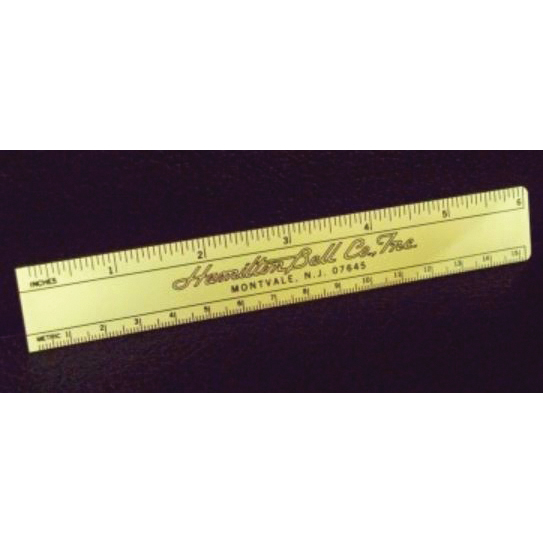 6" with inch and metric scale on one side. Fahrenheit-centigrade conversion scale and English/Metric equivalents on the reverse side. All printing is overlaid and not affected by alcohol or water.
