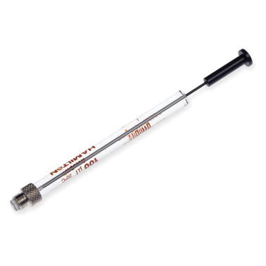 Syringe, 100 µl, 0.057 ID x 0.305" OD Barrel, Borosilicate Glass, PTFE, 1700 Series, 1710 Model, Gastight Type, AccuDil® Termination, Point Style, 1000 psi Pressure, 20 to 50°C Temperature Range, Gas Sterilizable