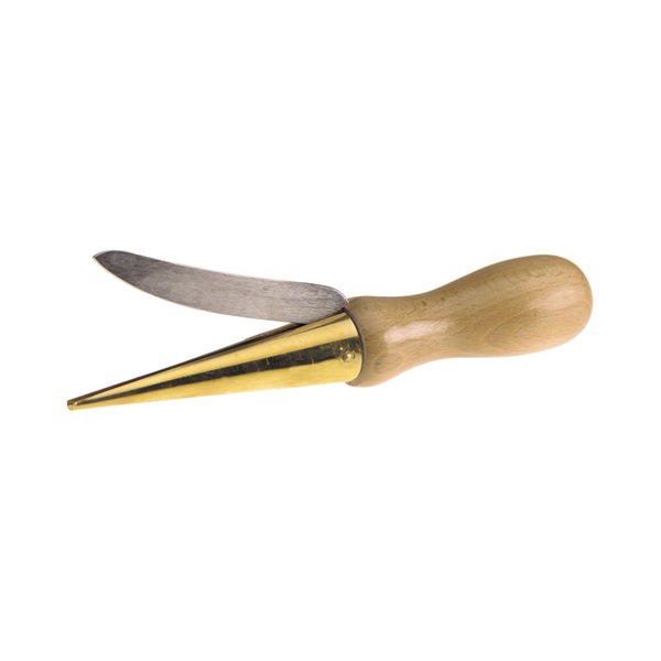 This handy tool is used to sharpen borers from 0.18 to 0.93" (5 to 24 mm). The solid brass cone has a hinged steel blade in a slot; mounted in a hardwood handle.