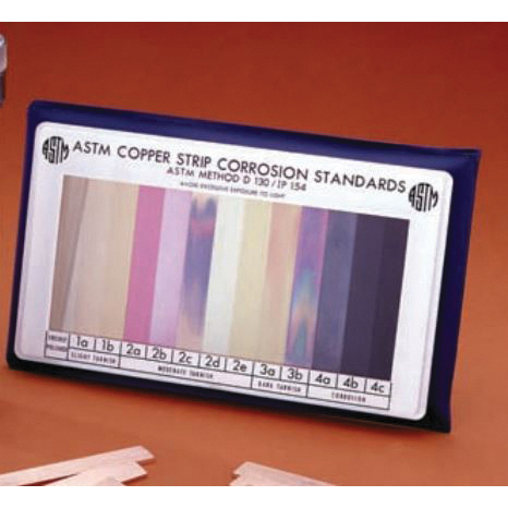 Copper Strip Corrosion Standard, Colored Reproductions of Tarnished Strips Encased in a Plastic Plaque, For Pressure Vessel Bath