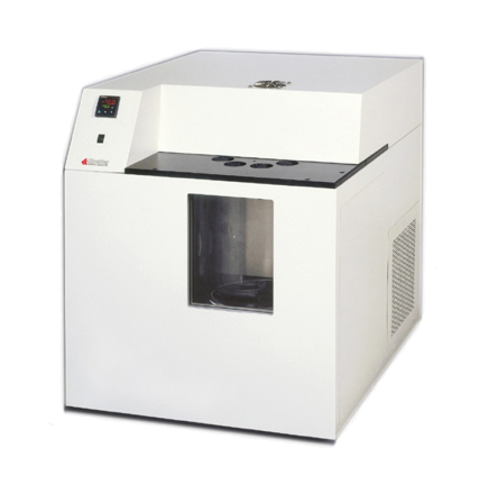 Refrigerated constant temperature bath with improvements in operating features, safety and cabinetry. Advanced temperature control circuitry includes microprocessor PID design and two decimal calibration offset. Simple pushbutton controls and dual digital displays permit easy setting and monitoring of bath temperature. Bath accommodates four glass capillary viscometers using 2" (51 mm) round holders (rectangular ports are available on special order). Bath medium is contained in a clear, evacuated Dewar flask, and glare-free fluorescent backlighting provides excellent visibility when working with the viscometers. The LKV3000 model operates at temperatures from ambient to -30°C (-22°F), exceeding ASTM temperature control accuracy and uniformity requirements throughout the operating range. Air-cooled hermetic compressors provide efficient operation with the use of CFC-free refrigerants.