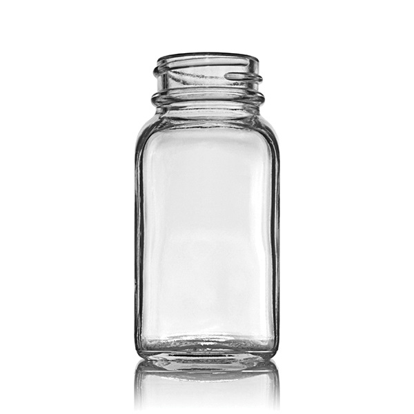 Bottle, 2 oz, 2 L x 1.6 W x 3.3" H, Flint, Glass, Wide Mouth, Square, 33-400 mm Thread Size