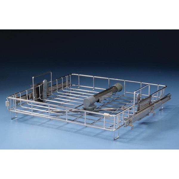 Upper standard rack 4595900 is designed for use with FlaskScrubber and FlaskScrubber Vantage series glassware washers and includes side rails for tank side wall installation. Constructed of type 304 stainless steel. Includes side releases latches and wash arm.
