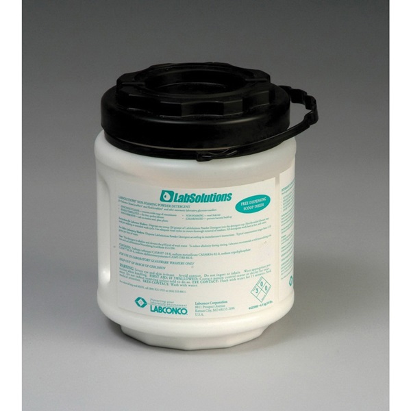 LabSolutions Non-foaming powder detergent is specially formulated for Labconco glassware washers. Removes lab contaminants such as grease, agar, blood and protein digestates. Rinses completely. Non-foaming formula does not promote leaks. A 1% solution has a pH of approximately 12.5. Contains phosphates. Non-hazardous formula may be shipped anywhere. Approximately 140 loads. LabSolutions Powder Detergent, Low-Foaming Liquid Detergent, and Neutralizing Acid Rinse are specially formulated for Labconco SteamScrubbers and FlaskScrubbers. Each removes a wide range of laboratory contaminants and rinses completely.