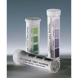 Test Paper, 3" L, 100 Strips, 50, 100, 200, 400 ppm Range, Chemically Treated Paper Strips Change to Indicate Sanitizer Level, Strips and Color Chart are Packaged in a Waterproof Plastic Vial, Includes Color Chart Label