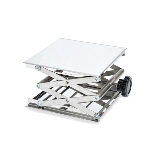 These heavy-duty, stainless steel lab-lifts are ultra-stable lifting platforms with exceptional strength and durability. Constructed of stainless steel, lab-lifts are designed for use in extreme environments and high load applications. Equipped with oversized, sure-grip adjustment knobs that provide extra leverage for easy height adjustments. Durable construction allows lifts to be autoclaved or chemically cleaned. Ideal for use in fume hoods or bench tops and holds a variety of items such as glassware, hotplates, baths, and magnetic stirrers.