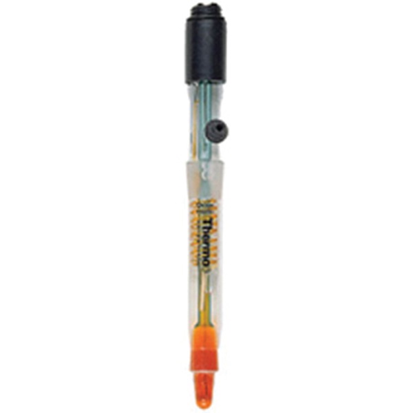 Combination pH Electrode, 12 dia x 120 mm L, Glass Body, 1 m L Cable, 0 to 14 pH Range, 0 to 100°C Operating Temperature, 0.01 pH Precision, Sleeve Junction, Screw Cap Connector Type, ROSS Internal Reference, 16 mm dia Cap Size