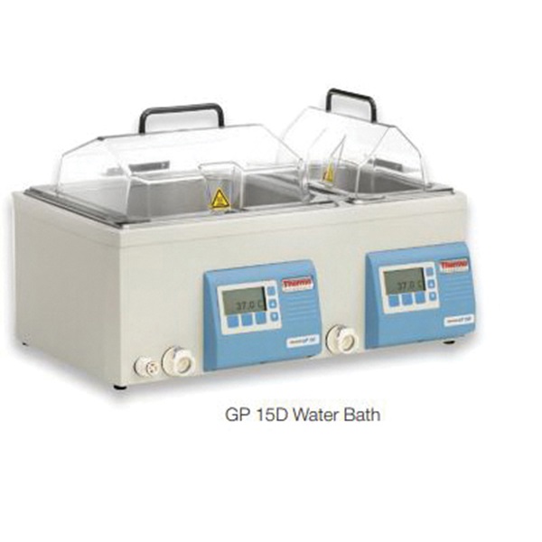 Water Bath, 5 L and 10 L, 15.4 L x 23.1 W x 9.2" H Exterior, GP 15D Model, Dual Stainless Steel Chamber, Epoxy Powder Coated Steel Cabinet, Digital Controller, Monochrome LCD Display, 1100 w Heating Capacity, General Purpose, UL, CE Certified