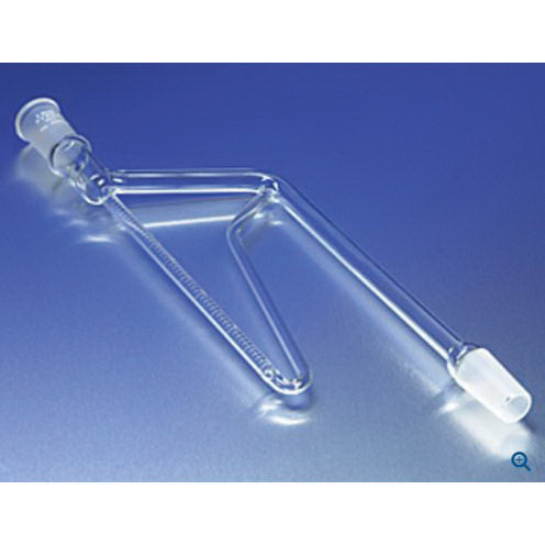 This 5 ml Pyrex® receiver is used to determine the amount of dilution in crankcase oils when gasoline has been used as fuel. It is designed to allow heat-sensitive materials to be kept away from the hot base of the flask and has an outer 24/40 standard taper joint at the top and an inner 24/40 standard taper joint on the sidearm.