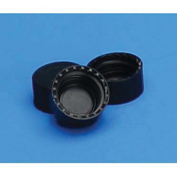 Closure, 9 mm, Black, Polypropylene, Unlined, Ribbed, Screw Thread, Solid Top Type, For 12 x 32 mm R.A.M.™ Large Opening Vials, Easy-on, Easy-off Convenience with A Twist of the Cap that Produces An Evaporation-proof Seal