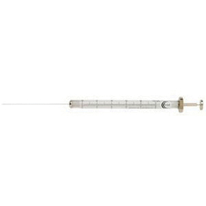MicroVolume Manual Syringes, 10 µl, 50 mm L, 0.11 ID x 0.47 mm OD, Stainless Steel, 26 ga, Bevel Tip, 2 Point Style, Fixed Needle, 0.485 ID x 6.5 mm OD Borosilicate Glass Barrel, 54.1 mm Stroke Length