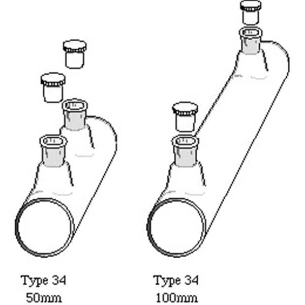 Type 32 and 34 cells range from path lengths of 10 mm to 100 mm with an internal diameter of 19 mm. Other diameters available from 5 mm ID to 30 mm ID on request. Please note when filling cylindrical cells, to avoid damage to the windows, do not fill cell to the top. Leave an air gap otherwise the windows will be broken by the hydraulic pressure of the stopper being inserted. PTFE stoppers are supplied with each cell as pictured.