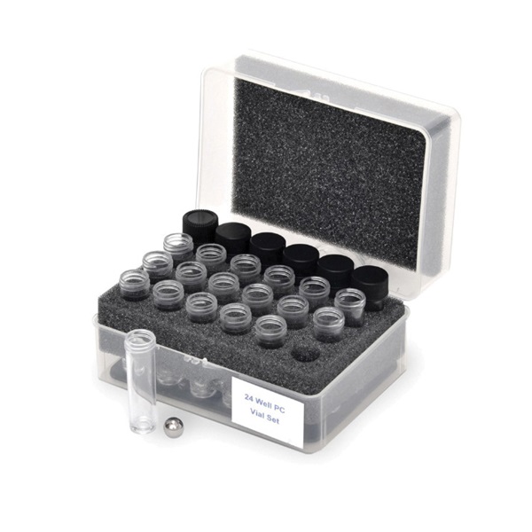 Vial Set, 4 ml, 24-Well, Polycarbonate, Lined, Grinding vial Sets Combine the Benefits of the Microplate Format and the size of Vials to Provide a Tool for Higher Throughput Sample Grinding, Plastic Case with Foam Rack
