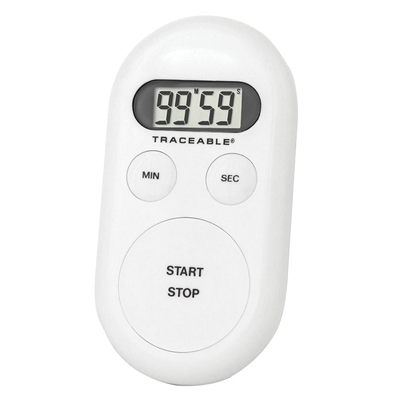 Fingertip Timer, 1.81 x 3.5 x 0.5", White, 1 Channel, 99 min, 59 sec Timer Range, 0.01% Timing Accuracy, 1 sec Timing Resolution, Count Down, without Memory