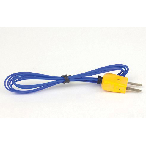 Fast-response, type-K thermocouple, beaded probe. Cable coated with PTFE can withstand temperatures of -40 to 250°C continuous or 300°C short-term use. Dimensions: 0.06" dia probe with cable length of 4' for use with all Type-K thermometers in liquids, air/gas, and semisolids.