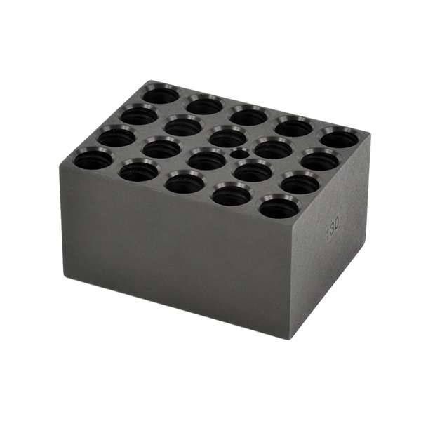Test Tube Block, 9.5 L x 7.6 W x 5.1 cm H, 48.4 D x 13.9 mm dia Well Size, Aluminum, 20 Well, For 12/13 mm Tube, Standard, Each Block has a Thermometer Well for Measuring Block Temperature