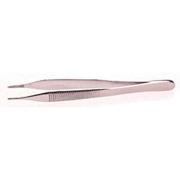 121 mm Stainless steel forceps with fine serrated jaws.