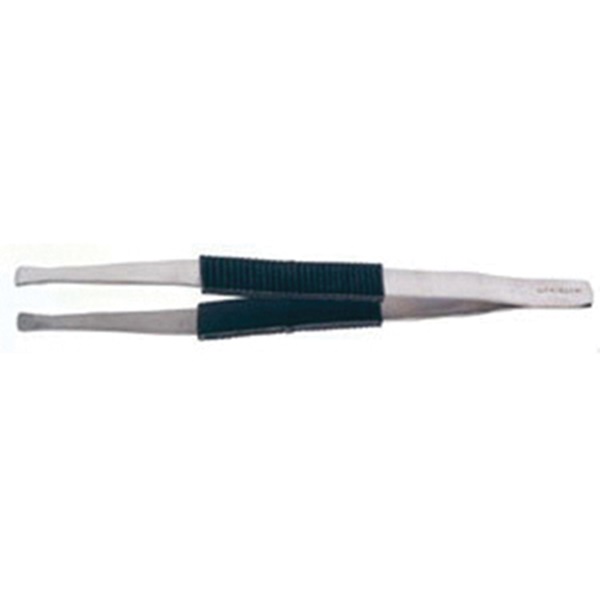 114 mm Stainless steel forceps with polypropylene finger grips and straight, flat tips, for handling membranes.