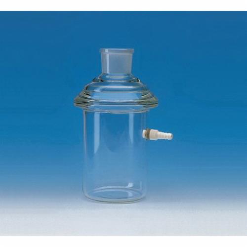 WT 100 Witt's flask, 1000 ml with tubing nozzle, vacuum filtration apparatus accessories, for filtrate collection in an inserted container. The bottle is made of borosilicate glass. It has a replaceable round lid and side-mounted tubing nozzle for vacuum tubing 8 mm (inside diameter).