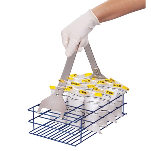 Universal rack handle fits all sizes of racks, making it easy to carry a full rack in one hand. Lightweight, strong, and comfortable to hold. Attaches and detaches easily and quickly, so it never gets in the way. Designed to prevent rack from tipping while it's carried.