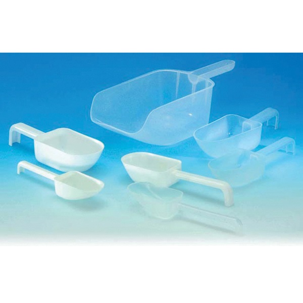 Scoops, 118.29 ml, 7.5" L, White, Polypropylene, ±2% Accuracy, Disposable, Sterile, Flat Base and Unique Handle Design Keeps the Scoop Upright on the Bench, Designed to Save Time in Quality Assurance and Microbiology Labs