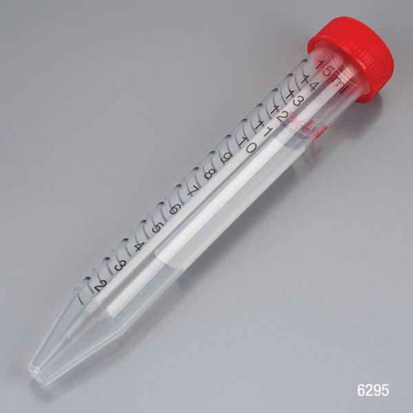 Centrifuge Tube, 15 ml, Polypropylene, 17000 xg Spin Rate, Sterile, Autoclavable, Marking Spot, Printed Graduation, -80 to 121°C Temperature Range, With Attached Red Flat Top Screw Cap