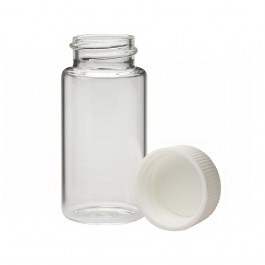 Liquid Scintillation Vial, 20 ml, 28 dia x 61 mm H, Clear, Borosilicate Glass, 22-400 Closure Size, Polypropylene Closure, Foamed Polyethylene Liner, Screw Thread Finish, Good Chemical Resistance to Acids, Alkalis, Solvents etc.