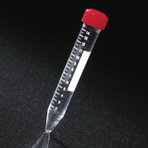 Centrifuge Tube, 15 ml, 17 dia x 120 mm H, Polystyrene, 1700 RCF Spin Rate, Non-sterile, Marking Spot, Printed Graduation, With Unattached Red HDPE Screw Cap