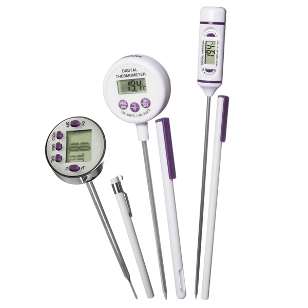 Electronic Stem Thermometer, -50 to 200°C Temperature Range, ±1°C Accuracy, 200 L x 25 mm W, Stainless Steel Stem, 0.1°C/°F Resolution, 0 to 100°C Calibration Points, 127 mm L Probe, LR44 Battery, IP65 Waterproof, Calibrated, Sterile