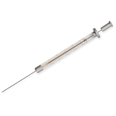 Syringe, 25 µl, 0.005 ID x 0.028" OD Needle, Stainless Steel, Borosilicate Glass, PTFE, 1700 Series, 1702 Model, Gastight Type, Fixed Needle Termination, 22s ga, 3 Point Style, 1000 psi Pressure, 20 to 50°C Temperature Range, Gas Sterilizable