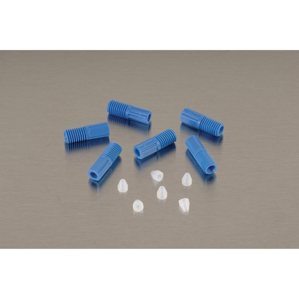 Compression Fitting, 0.25 OD x 0.75" L, Blue, Resin, with Ferrules, For HPLC Poly Manifold, Hard-Wall Tubing, Include Ferrules for Compression Fit to Waste Line