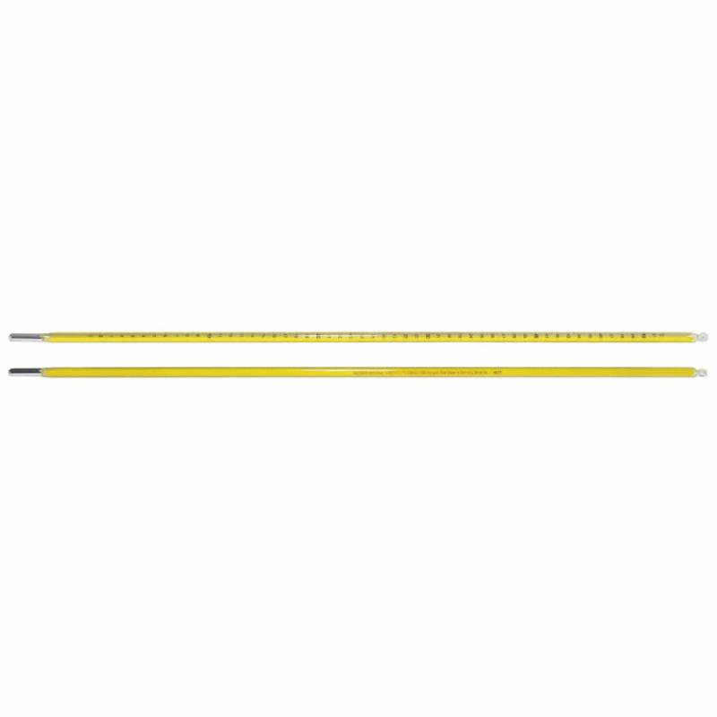 Thermometer, Mercury Filled, 460 mm L, SAMA Number CP40, -1 to 51°C, Liquid-in-glass, Yellow Back, 0.1°C Division, 76 mm Immersion Depth, Partial Immersion, NIST traceable, Individually Serialized