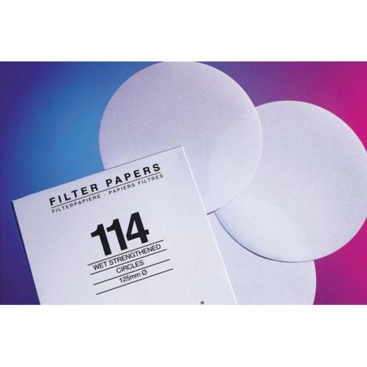 Qualitative Filter Paper, 150 mm dia, Cellulose, Grade 114, Wet Strengthened Grade Type, Circle Format, 190 µm Thickness, 25 µm Particle Retention in Liquid, 75 g/m2 Nominal Basis Weight, 38 Secs/100 ml (Herzberg) Filtration Speed