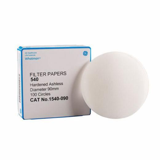 Quantitative Filter Paper, 110 mm dia, High-quality Cotton Linters, Grade 540, Hardened Ashless Grade Type, Circle Format, 160 µm Thickness, 8 µm Particle Retention in Liquid, 85 g/m2 Nominal Basis Weight, 200 Secs (Herzberg) Filtration Speed